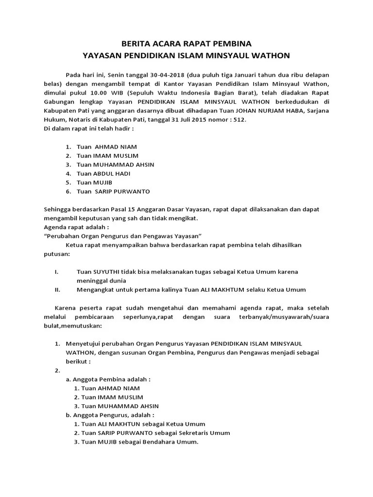 Contoh Akta Perubahan Yayasan / Contoh Akta Perubahan Yayasan : Yayasan x tersebut menjadi yayasan wakaf, sehingga dalam kegiatan pengelolaan harta wakaf yang kemudian menjadi harta yayasan tersebut.. Pengangkatan dan pemberhentian anggota pengurus dan anggota pengawas;; Sk menteri kehakiman dan hak azasi . Akta perubahan anggaran dasar yayasan 1 . Keputusan mengenai perubahan anggaran dasar ; Keputusan mengenai perubahan anggaran dasar;.